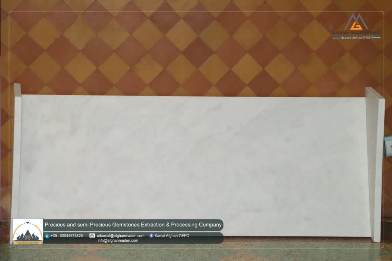 Afghan Cloud White Marble Slabs are highly durable and polished to a mirror-like finish. Resistant to sunlight, water absorption, acidity, and scratches, these slabs are ideal for flooring, surfaces, kitchens, and tables. Once installed, they provide a lifetime of use and maintain their vibrant color while resisting scratches and damage